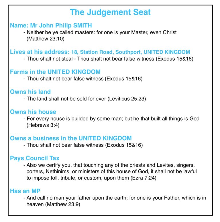 Mr Smith is a citizen of the country UNITED KINGDOM. He is a subject of the king, and therefore broke the very first commandment – “have no other “gods before me”- and he broke many more besides